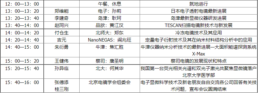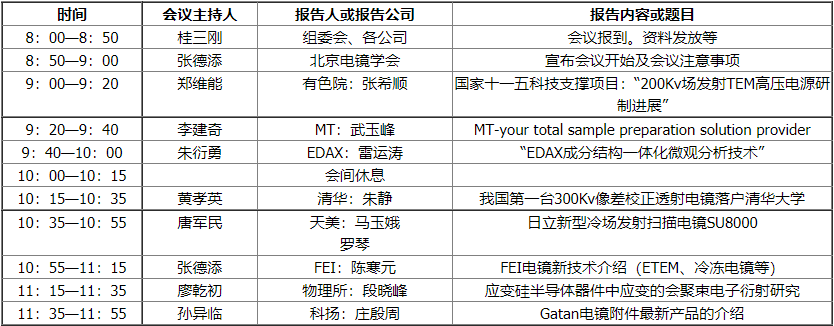 08年度北京市電子顯微學年會在北科大廈圓滿結束 學術報告時間安排表(2009年1月13日、星期二、北科大廈三樓學術廳)