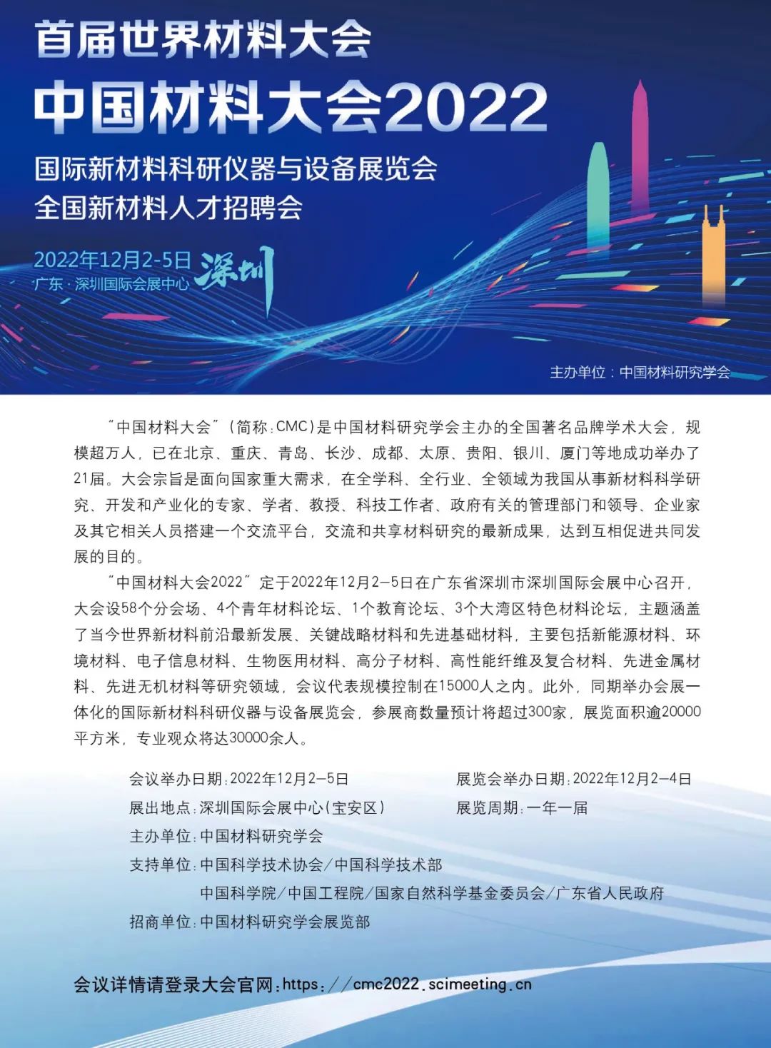 【行業會議】2022中國材料大會-國際新材料科研儀器與設備展覽會全國新材料人才招聘會