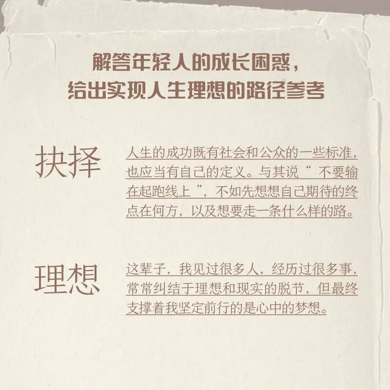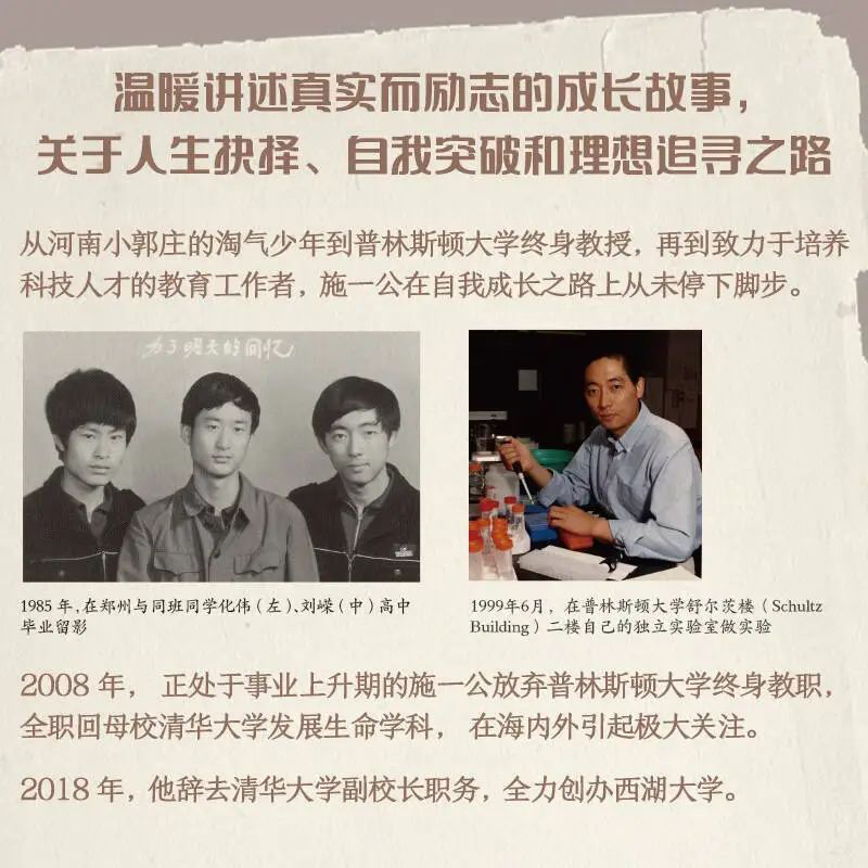 免費 贈書 為什么要閱讀? 因為每一本書都像一扇任意門 想去哪里,都由你自己決定 無法經歷的人生,書籍會帶你相遇 叮!請查收這份「驚喜禮遇」 中鏡科儀贈書活動來啦! 喜歡的書友千萬別錯過! (文末有驚喜) 《自我突圍》 向理想前進! 西湖大學校長、中國科學院院士 作者簡介 施一公 1967年出生于河南鄭州,生物學家,西湖大學首任校長,中國科學院院士,美國國家科學院外籍院士,美國藝術與科學院外籍院士。 1989年獲清華大學生物科學與技術系學士學位,1995年獲美國約翰斯·霍普金斯大學分子生物物理學博士學位,1998—2008年歷任美國普林斯頓大學分子生物學系助理教授、副教授、教授、講席教授,2008—2018年全職回到母校清華大學任教,曾任副校長。 內容簡介 2008年,正處于事業上升期的施一公放棄普林斯頓大學終身教職,全職回母校清華大學發展生命學科,在海內外引起較大關注。2018年,他辭去清華大學副校長職務,全力創辦西湖大學。 他在56年的人生歷程中,總是做出讓大多數人難以理解的抉擇。是什么促使他一次次突破自我?如何發揮理想的力量,實現人生理想的路徑又是什么?相信讀者可以在這本書中找到答案。 這是一本關于成長、求學、教育、家庭、友誼、理想之書,既寫給自己,也寫給教育科研工作者,更是寫給青年學子,在追求理想的道路上步履不停,共同前行。 名人推薦 一個有血有肉、有情有義、有膽有識、志懷高遠、行必有果的一公躍然紙上。做人當如施一公! 韓啟德——中國科學院院士、中國科學技術協會名譽主席 這本書可以說是西湖大學創校校長的自傳,我們能從書中讀到新時代中國知識分子的內心世界。 楊振寧——諾貝爾物理學獎獲得者、中國科學院院士 《自我突圍》帶我們進入了一個真實的施一公的世界,向我們展示了一個現實的理想主義者的自我突圍,一個當代中國科學家的人生觀。 錢穎一——清華大學文科資深教授、經濟管理學院院長(2006-2018年) 相識一公十數年,亦兄亦友,愈久愈知,尤佩其堅韌。一公在我心中是一位奮進不息的理想主義者,這種理想主義體現在他的科研取向,也貫穿于他看待人生的視角。從他的成長經歷中,我們不僅可以從多個層面了解其人,更可以感知當代中國科學家的探索精神和執著追求。 潘建偉——中國科學院院士、中國科學技術大學常務副校長 一公校長的這本書既是一部成長史,也是一部思想史,成長的故事豐滿,思想的歷程精彩,堪稱一劑擺脫迷茫焦慮、實現自我驅動的良藥,學生、家長和教育工作者讀了,一定會在有意思和有意義中收獲滿滿。 劉彭芝——中學特級教師、人大附中、人大附中聯合總校原校長、現名譽校長 西湖大學寄托了太多人對更好教育的理想,作為領頭人的施一公也是一位理想主義者,但西湖大學畢竟剛剛出發不久,它的未來會是什么樣?或許我們可以從過去到現在的施一公身上找到一些答案,這本書就是一把鑰匙。 白巖松——央視主持人、資深新聞評論員 凡益之道,與時偕行。與一公結識已久,他的經歷為不忘初心、砥礪前行、創新探索做了生動的注腳。這本書的心路歷程,相信能夠鼓勵更多年輕人點亮心中燈塔,不斷突破自我,玉汝于成,在成長路上有所收獲。 張磊——高領集團創始人兼首席執行官 聯系我們 公司官網:www.newsuzhou.com.cn 免費熱線/企業QQ:400 001 9621 市場部郵箱:zjky@emcn.com.cn 官方商城:http://www.emcn.net.cn/ 地區負責人聯系方式 北京地區:張經理 18642002287 南京地區:鄭經理 15050567596 廣州地區:鄭經理 13724052586 西安地區:馬經理 13324587366 沈陽地區:王經理 15140221479 鄭州地區:唐經理 15237816868