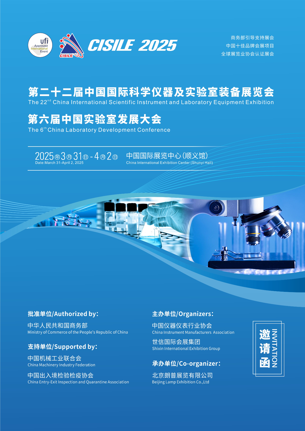 中國國際科學(xué)儀器及實(shí)驗(yàn)室裝備展覽會(以下簡稱“科儀展”或英文縮寫“CISILE”)作為中國十佳品牌會展項(xiàng)目、中國誠信展覽、UFI認(rèn)證的國際品牌展會,至今已經(jīng)成功舉辦了二十一屆。二十余載,CISILE主辦和組織單位不忘初心,不斷提升科學(xué)儀器及實(shí)驗(yàn)室裝備展覽的規(guī)模和水平。CISILE已經(jīng)成為科研院所、高等院校、第三方檢測機(jī)構(gòu)、大型企業(yè)等單位了解、采購科學(xué)儀器及實(shí)驗(yàn)室裝備的必選線下平臺,是全球科學(xué)儀器及實(shí)驗(yàn)室裝備領(lǐng)域的盛會,更是科學(xué)儀器及實(shí)驗(yàn)室裝備領(lǐng)域的國際前沿發(fā)展趨勢和產(chǎn)業(yè)升級的“風(fēng)向標(biāo)”,為推動我國科學(xué)儀器及實(shí)驗(yàn)室裝備領(lǐng)域的技術(shù)創(chuàng)新、自主研發(fā)及行業(yè)發(fā)展作出了積極貢獻(xiàn)。為深入貫徹落實(shí)習(xí)近平總書記關(guān)于加快實(shí)現(xiàn)高水平科技自立自強(qiáng)的指示精神,助推科技創(chuàng)新和產(chǎn)業(yè)創(chuàng)新深度融合,助力發(fā)展新質(zhì)生產(chǎn)力,在商務(wù)部、中國機(jī)械工業(yè)聯(lián)合會的指導(dǎo)下,中國儀器儀表行業(yè)協(xié)會與世信國際會展集團(tuán)研究決定,于2025年3月31日-4月2日在中國國際展覽中心(順義館)舉辦第二十二屆中國國際科學(xué)儀器及實(shí)驗(yàn)室裝備展覽會(以下簡稱 CISILE 2025),預(yù)計(jì)展示面積40000平方米,參展企業(yè)1000余家,專業(yè)觀眾超50000人次。集中展示實(shí)驗(yàn)室儀器及裝備、分析儀器、光學(xué)儀器、試驗(yàn)儀器、生命科學(xué)儀器、生物技術(shù)與儀器等專業(yè)領(lǐng)域的新產(chǎn)品、新技術(shù)、新成果。同期將舉辦第六屆實(shí)驗(yàn)室發(fā)展大會、第五屆中國危化品管理與實(shí)驗(yàn)室安全高峰論壇等學(xué)術(shù)論壇及相關(guān)活動,為廣大科研人員及行業(yè)人士便捷地獲取行業(yè)最新資訊、分享前沿技術(shù)和研究成果,搭建交流研討產(chǎn)業(yè)政策的互動平臺。CISILE 2024展示面積和參展企業(yè)數(shù)量實(shí)現(xiàn)雙增長,展會能級和品牌效應(yīng)實(shí)現(xiàn)雙躍升。我們將繼續(xù)努力,再次提升CISILE 2025規(guī)模和水平,匯聚更多行業(yè)頂尖企業(yè)與行業(yè)精英,為科研院所、高等院校、第三方檢測機(jī)構(gòu)、大型企業(yè)等領(lǐng)域的用戶單位提供更寬的選擇面、更好的采購渠道、更深的研討層次。誠摯邀請和歡迎您蒞臨CISILE 2025參展參會,共享合作與發(fā)展機(jī)遇。